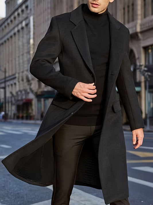 Men’s Mid-Length Overcoat — Single-Breasted, Business-Casual, Fall/Winter